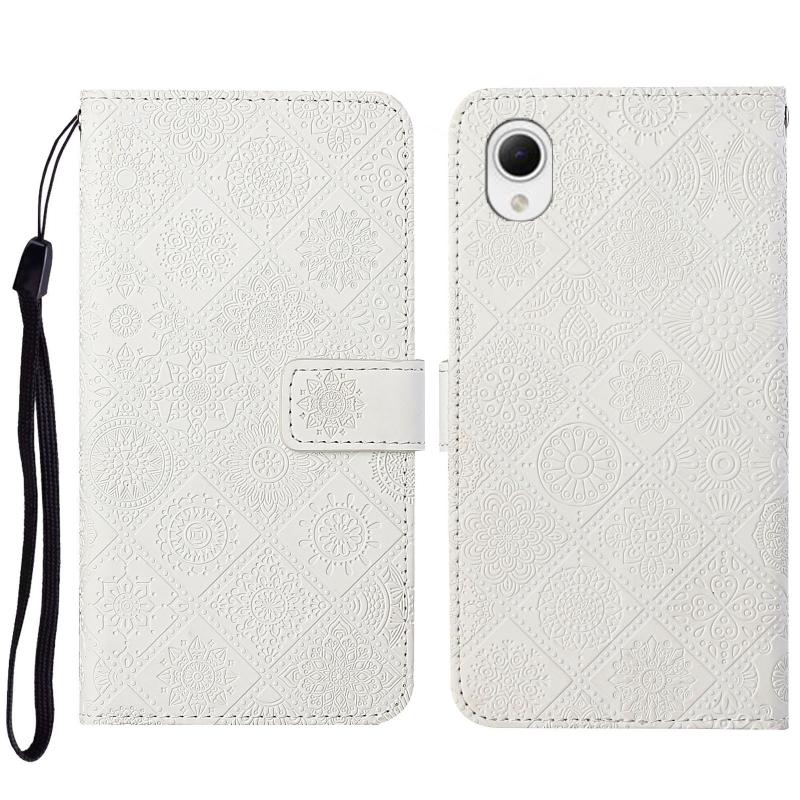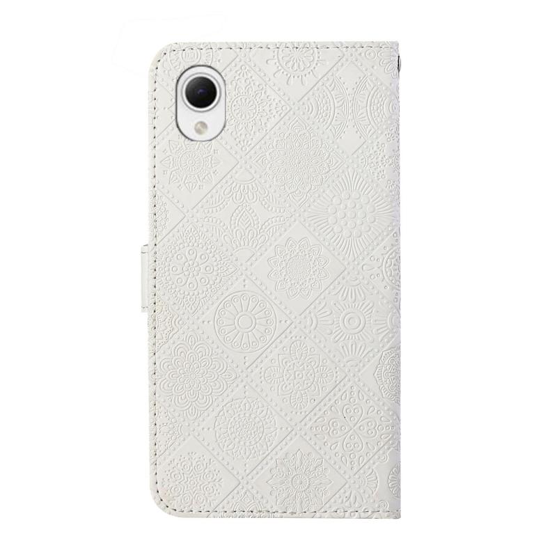 Θήκη τηλεφώνου Samsung Galaxy A23e από δέρμα με ανάγλυφο εθνοτικό σχέδιο (Λευκό)