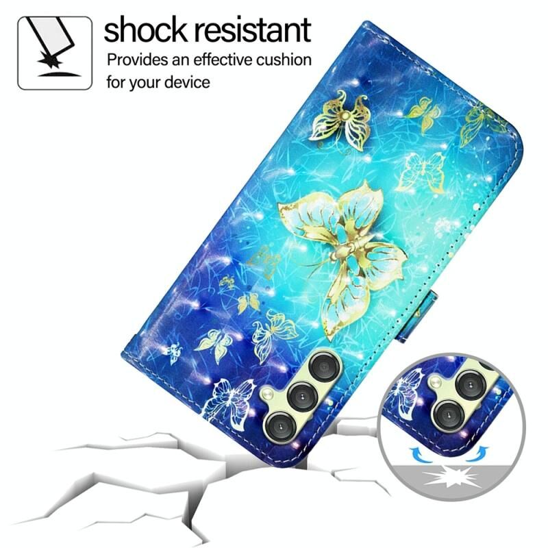 Θήκη τηλεφώνου Samsung Galaxy A24 4G 3D Ζωγραφική Οριζόντια Αναδιπλούμενη Δερμάτινη (Χρυσή Πεταλούδα)