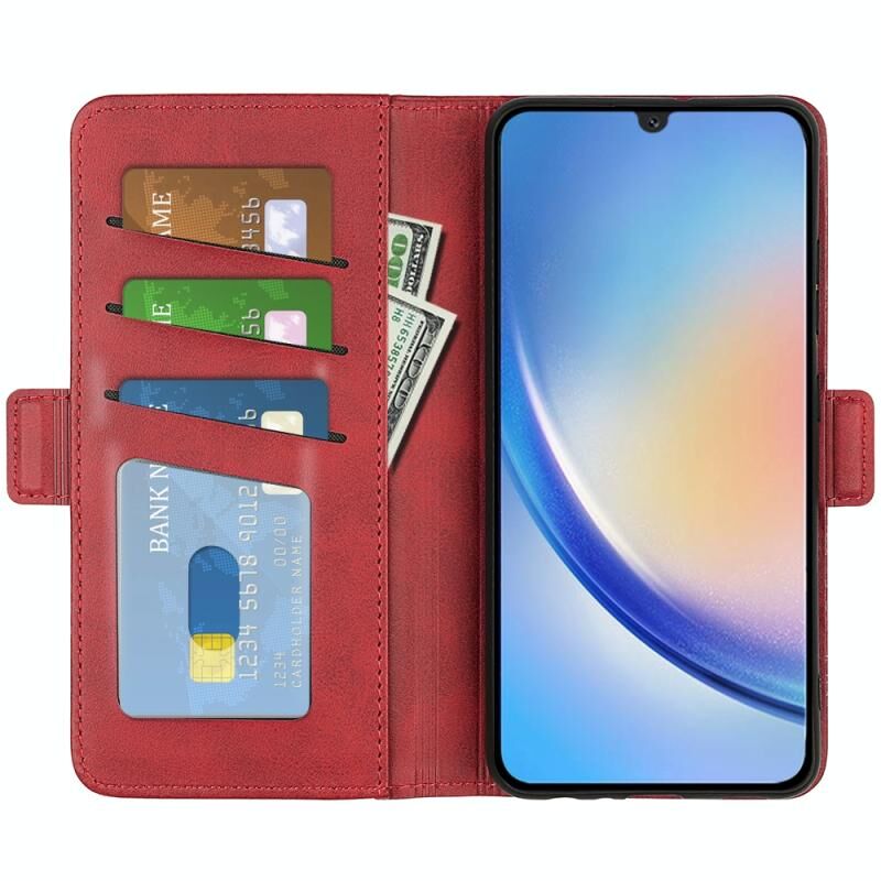 Για Samsung Galaxy A24 4G / 5G διπλής όψης μαγνητική πόρπη δερμάτινη θήκη τηλεφώνου (κόκκινο)