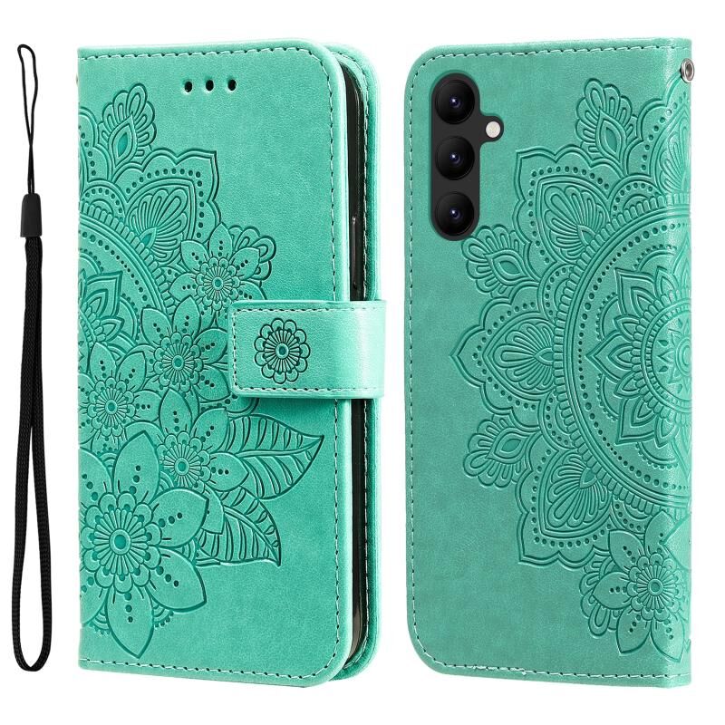 Θήκη τηλεφώνου Samsung Galaxy A24 4G από δέρμα με ανάγλυφο σχέδιο 7 πέταλων (Ανοιχτό Μωβ)