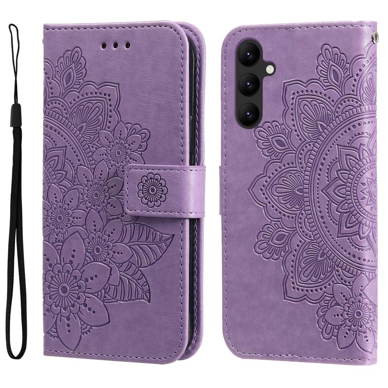 For Samsung Galaxy A24 4G 7-petal Flowers Embossing Leather Phone Case(Light Purple)