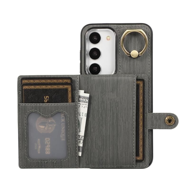 Για Samsung Galaxy A24 4G / A25 5G βουρτσισμένη υφή θήκη για το πορτοφόλι με δαχτυλίδι κάτοχος τηλέφωνο (γκρι)