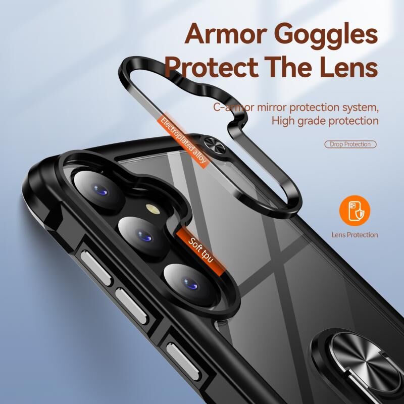 Για το Samsung Galaxy A24 4G / A25 5G TPU + PC φακός προστασίας υπόθεση τηλεφώνου με θήκη δαχτυλίδι (μαύρο)