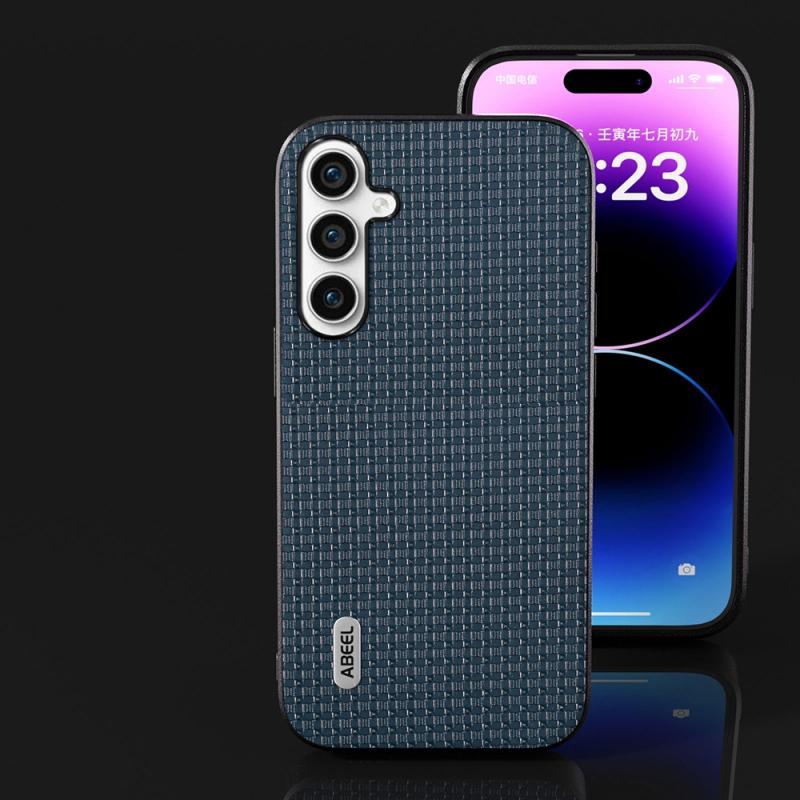 For Samsung Galaxy A24 4G ABEEL Genuine Leather Luxury Black Edge Phone Case(Royal Blue)