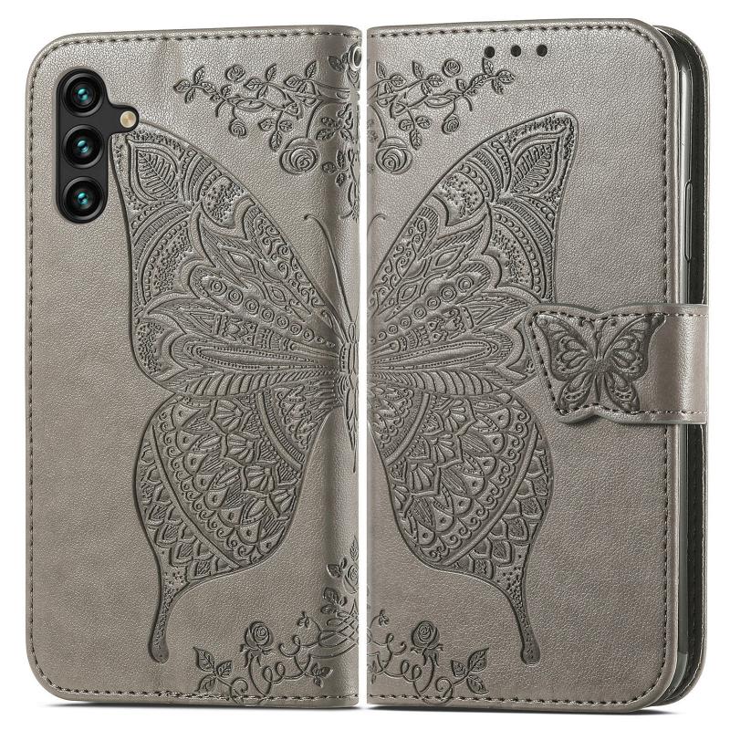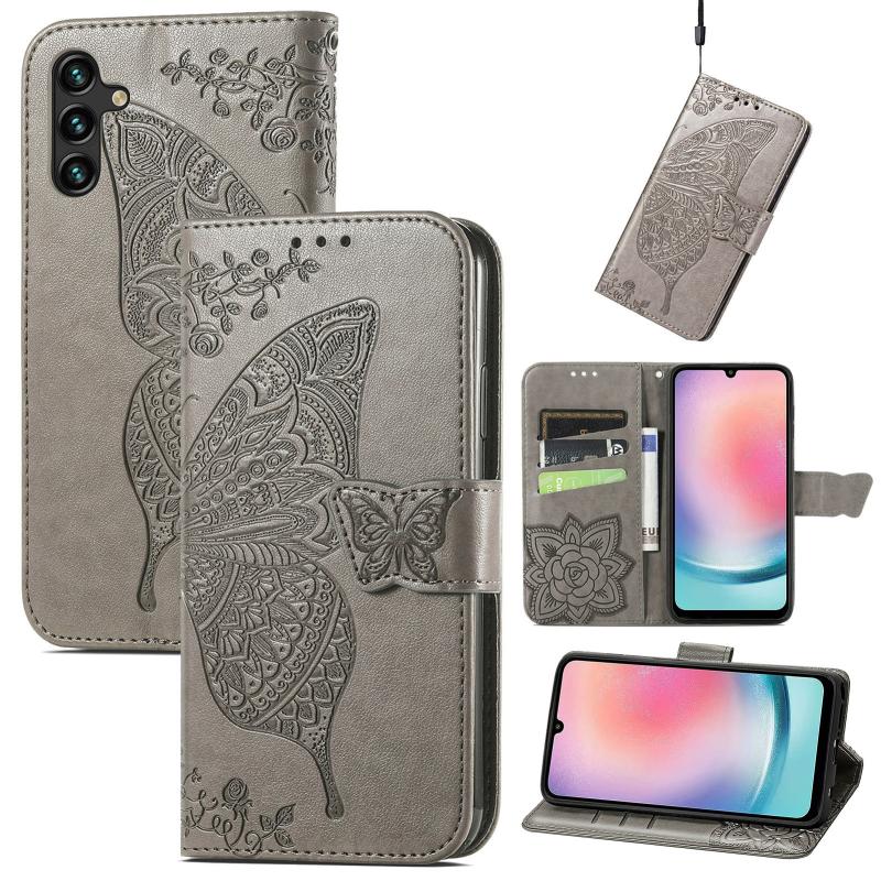 For Samsung Galaxy A24 4G Butterfly Love Flower Embossed Leather Phone Case(Gray)