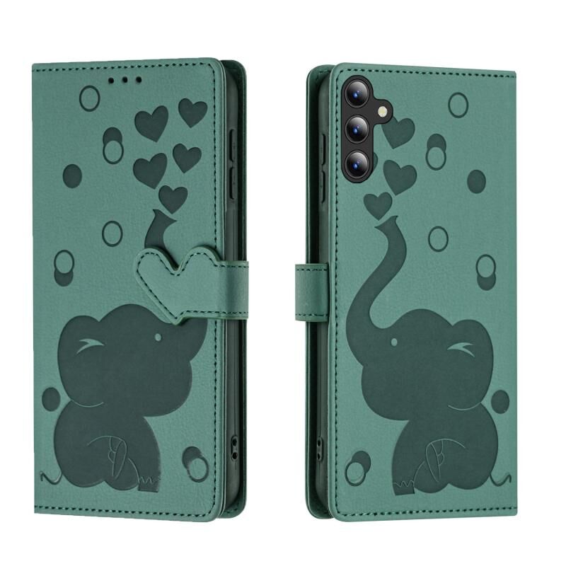 Θήκη τηλεφώνου Samsung Galaxy A24 4G από δέρμα με ανάγλυφο σχέδιο καρτούν ελέφαντα (Μπλε)