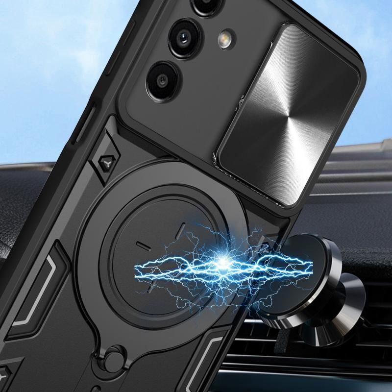 Θήκη τηλεφώνου για Samsung Galaxy A24 4G με υφή CD, ολισθαίνουσα προστασία κάμερας Camshield και μαγνητική βάση (Ροζ)
