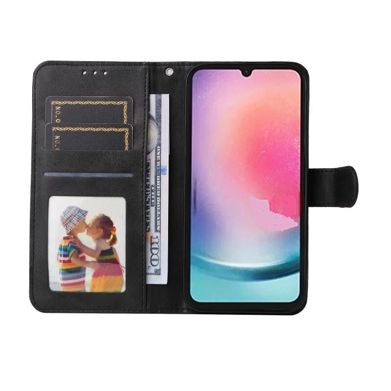 Για Samsung Galaxy A24 4G Κλασική θήκη τηλεφώνου από δέρμα με υφή μοσχαριού (Μαύρο)