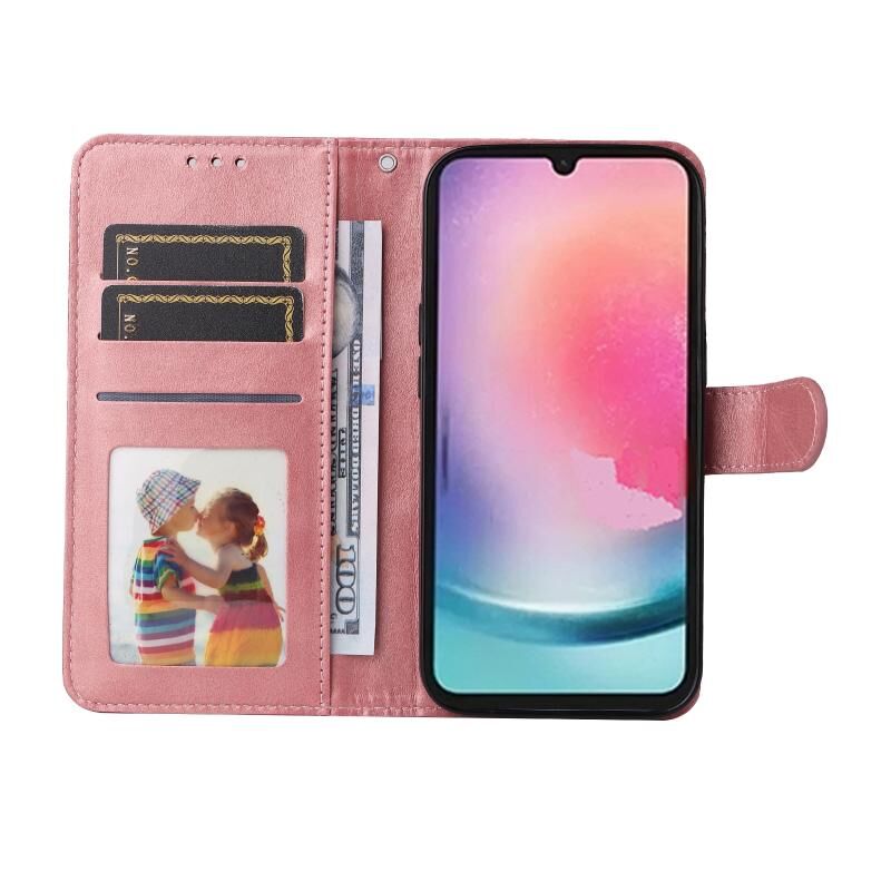 Για Samsung Galaxy A24 4G Κλασική θήκη τηλεφώνου από δέρμα με υφή μοσχαριού (ροζ χρυσό)