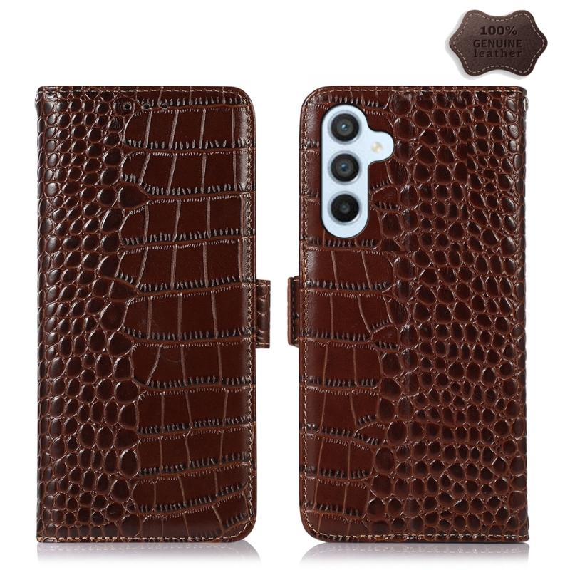 Θήκη τηλεφώνου από γνήσιο δέρμα αγελάδας με επικάλυψη κροκόδειλου για Samsung Galaxy A24 4G (Καφέ)