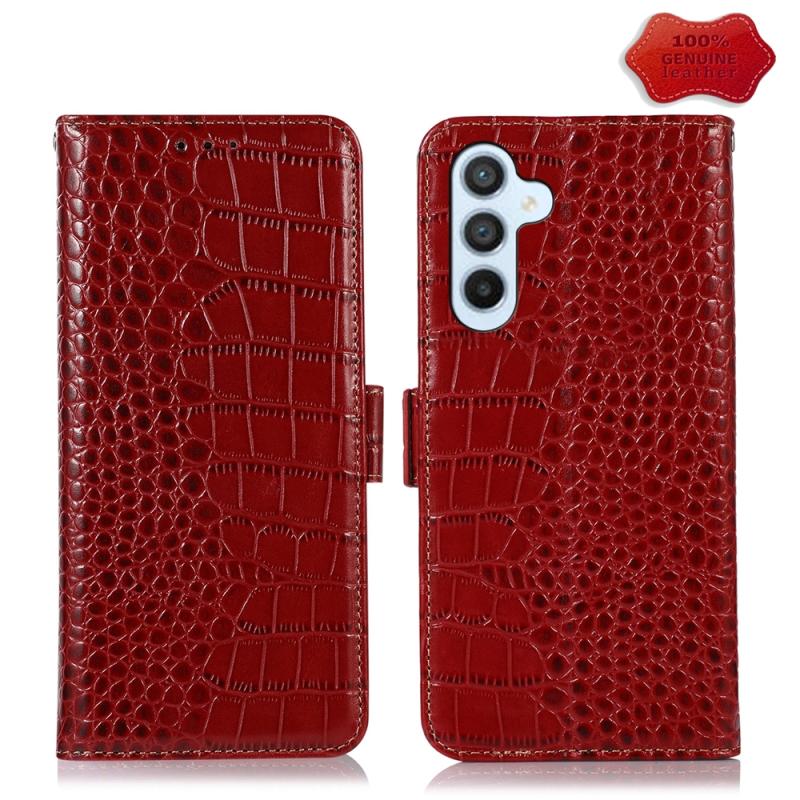 Θήκη τηλεφώνου από γνήσιο δέρμα αγελάδας με επικάλυψη κροκόδειλου για Samsung Galaxy A24 4G (Κόκκινο)