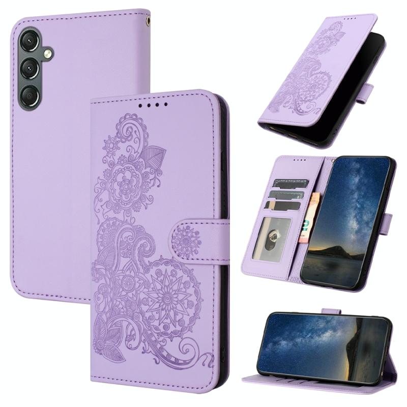 For Samsung Galaxy A24 4G Datura Flower Embossed Flip Leather Phone Case(Purple)
