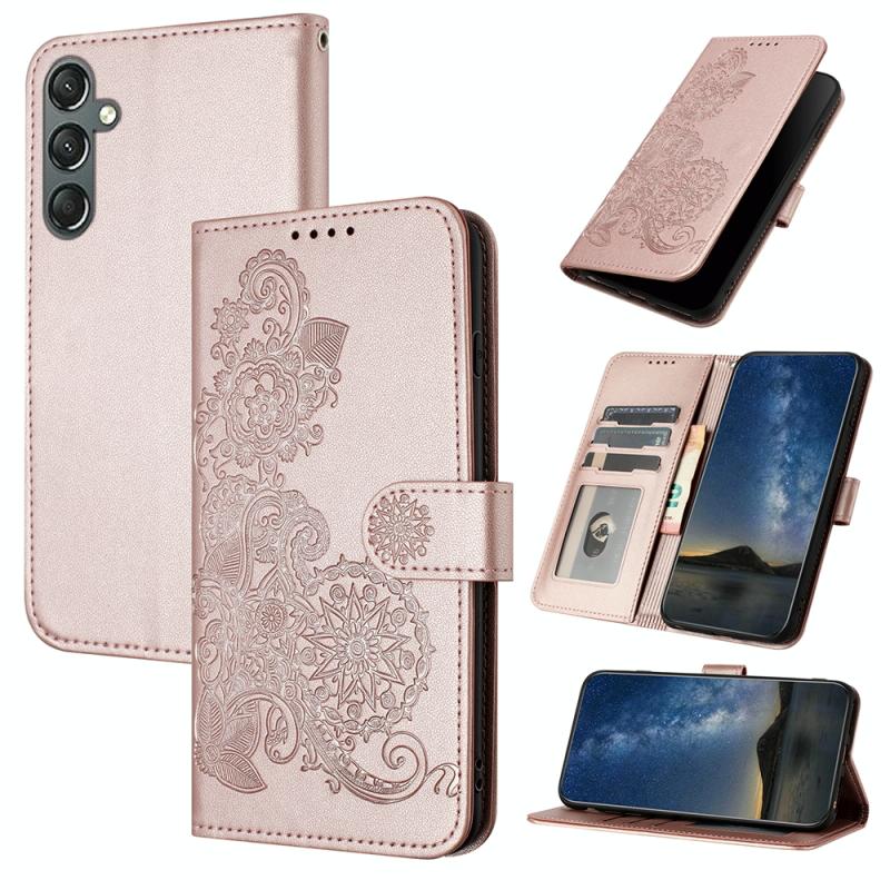 For Samsung Galaxy A24 4G Datura Flower Embossed Flip Leather Phone Case(Rose Gold)