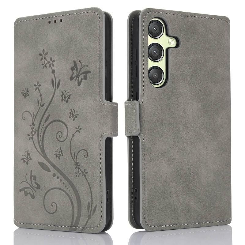 For Samsung Galaxy A24 4G Dreamy Butterfly Love Flower Embossed Leather Phone Case(Grey)