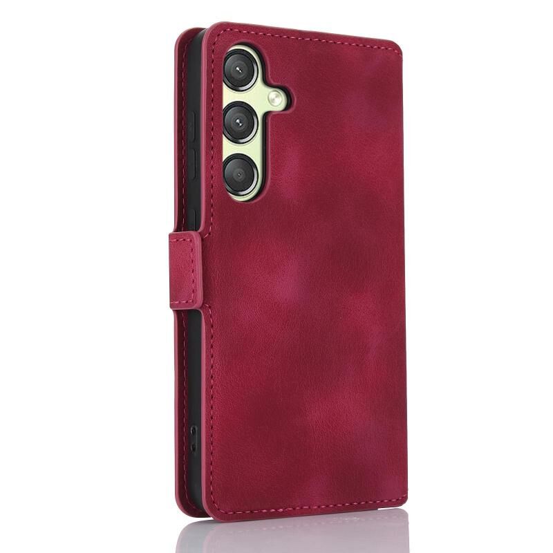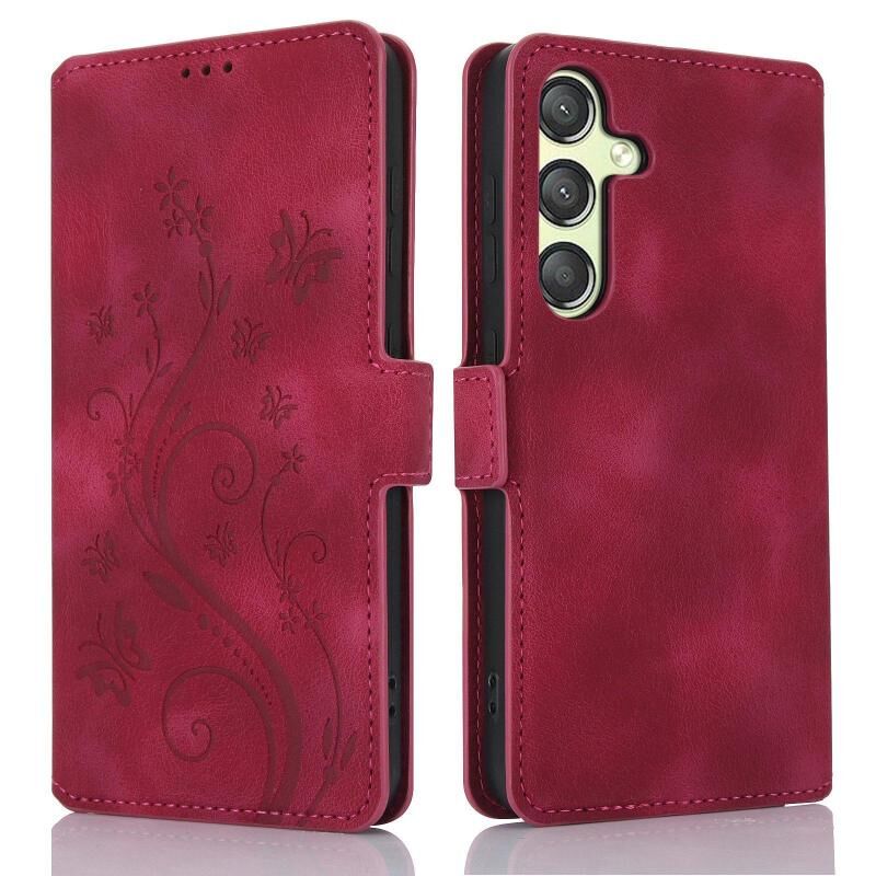 Θήκη τηλεφώνου Samsung Galaxy A24 4G με ανάγλυφο σχέδιο πεταλούδας, λουλουδιών και δέρμα (Κόκκινο)
