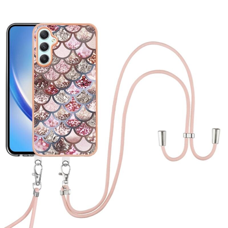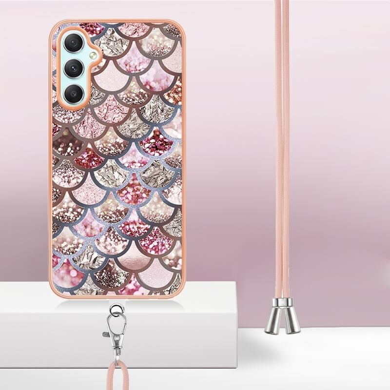 Θήκη κινητού τηλεφώνου Samsung Galaxy A24 4G με επιμετάλλωση IMD TPU με κορδόνι (Ροζ Λέπια)