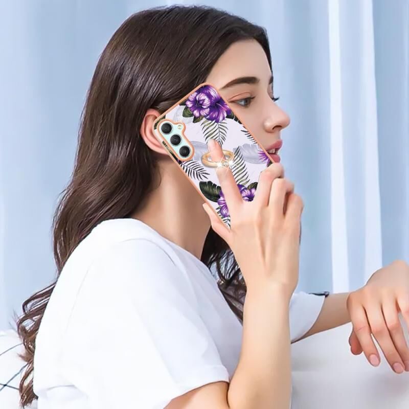 Θήκη κινητού τηλεφώνου Samsung Galaxy A24 4G με δακτύλιο, από TPU με ηλεκτρολυτική επιμετάλλωση IMD (Ροζ Λέπια)