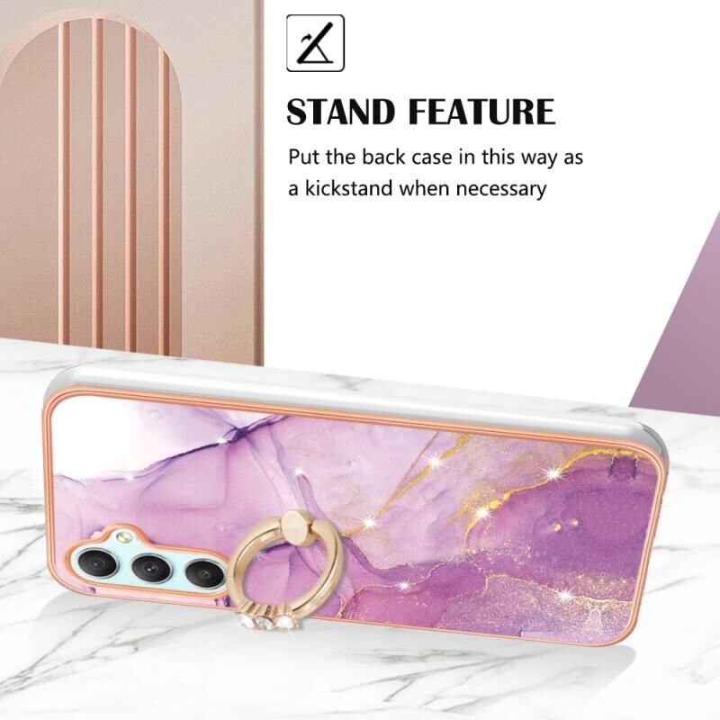 Θήκη κινητού τηλεφώνου Samsung Galaxy A24 4G με Ηλεκτρολυτική Επικάλυψη, σχέδιο Μάρμαρου IMD, από TPU με Δακτύλιο Στήριξης (Λευκό 006)