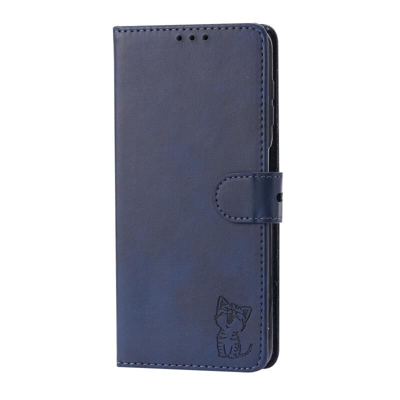 Για Samsung Galaxy A24 4G ανάγλυφο Happy Cat μοτίβο Flip υπόθεση τηλεφώνου δέρμα (μπλε)