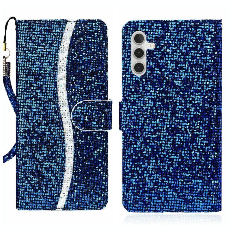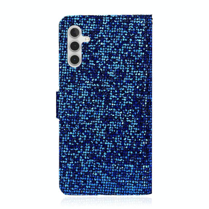 Θήκη τηλεφώνου Samsung Galaxy A24 4G από δέρμα με γκλίτερ σε ασημί χρώμα (Μπλε)