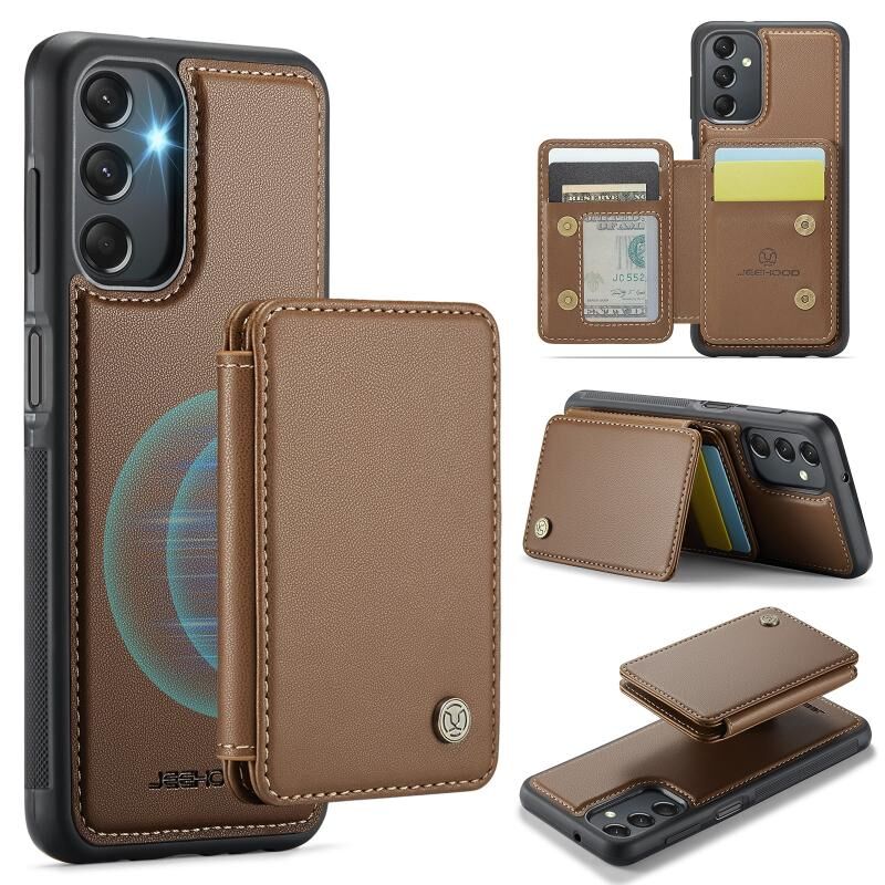 Θήκη τηλεφώνου JEEHOOD J05 για Samsung Galaxy A24 4G, Δερμάτινη με Μαγνητικό Στυλ και Προστασία RFID (Μαύρο) (Καφέ)