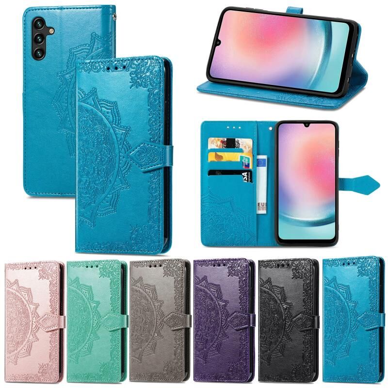 Για Samsung Galaxy A24 4G Mandala λουλούδι ανάγλυφο δερμάτινη θήκη τηλεφώνου (μπλε)