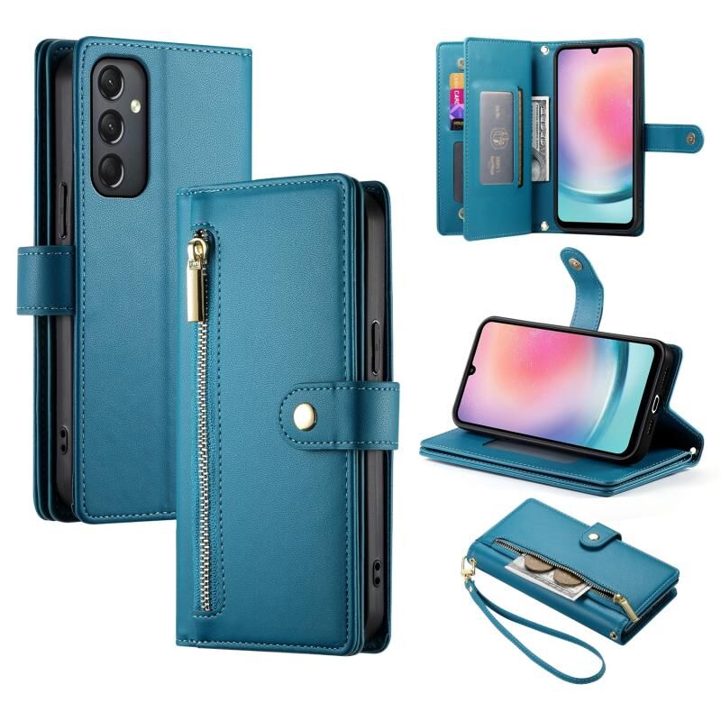 Για Samsung Galaxy A24 4G Nine Card-slot φερμουάρ πορτοφόλι τσάντα δερμάτινη θήκη τηλεφώνου (μπλε)