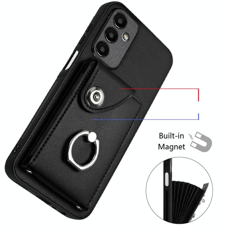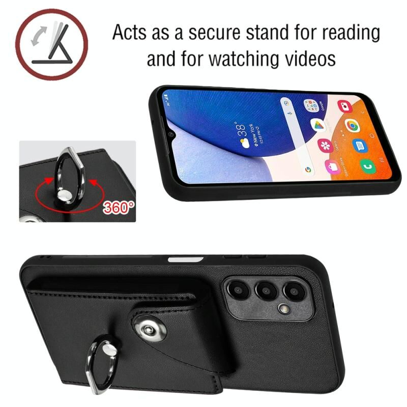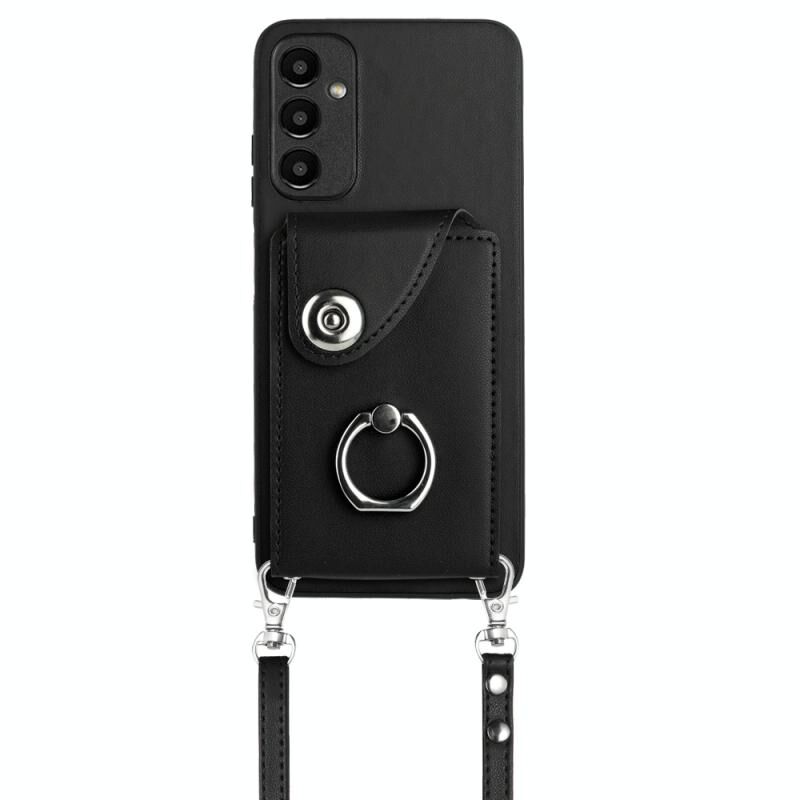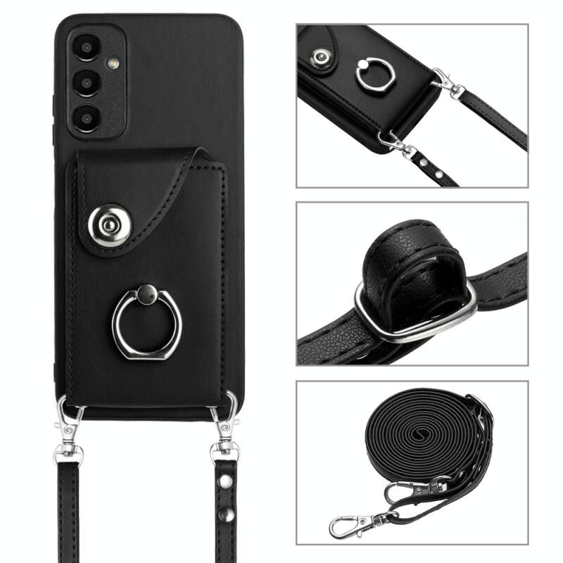 Για Samsung Galaxy A24 4G Οργανική κάρτα τσάντα τσάντα δαχτυλίδι κάτοχος θήκη τηλεφώνου με μακρύ κορδόνι (Μαύρο)