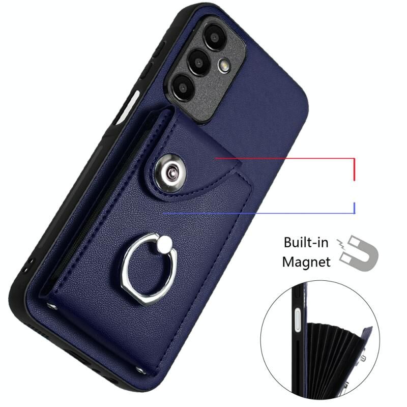 Για Samsung Galaxy A24 4G Οργανική κάρτα τσάντα τσάντα δαχτυλίδι κάτοχος θήκη τηλεφώνου με μακρύ κορδόνι (Μπλε)