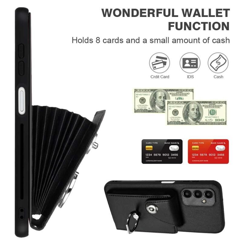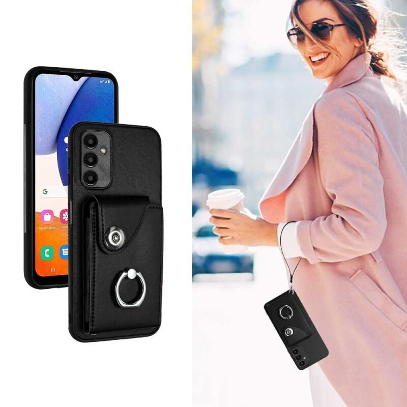 Για Samsung Galaxy A24 4G Οργάνου τσάντα κάρτα δαχτυλίδι κάτοχος PU θήκη τηλεφώνου με κορδόνι (Μαύρο)