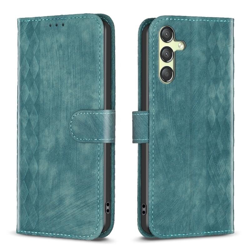 Για Samsung Galaxy A24 4G καρό ανάγλυφη δερμάτινη θήκη τηλεφώνου (πράσινο)