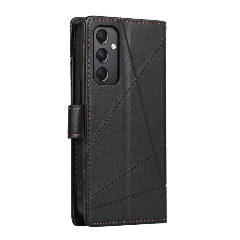 Θήκη τηλεφώνου για Samsung Galaxy A24 4G από γνήσιο δέρμα PU με ανάγλυφη υφή και λεπτή γραμμή (Μαύρο)