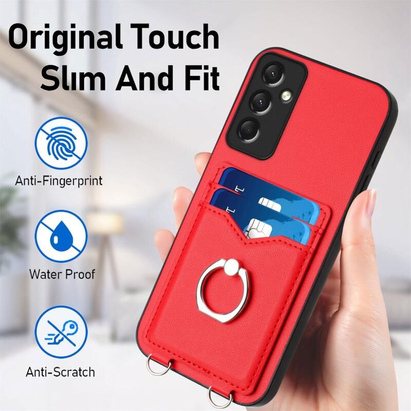 Για Samsung Galaxy A24 4G R20 Crossbody σχοινί δαχτυλίδι κάτοχος κάρτας υπόθεση τηλεφώνου (κόκκινο)