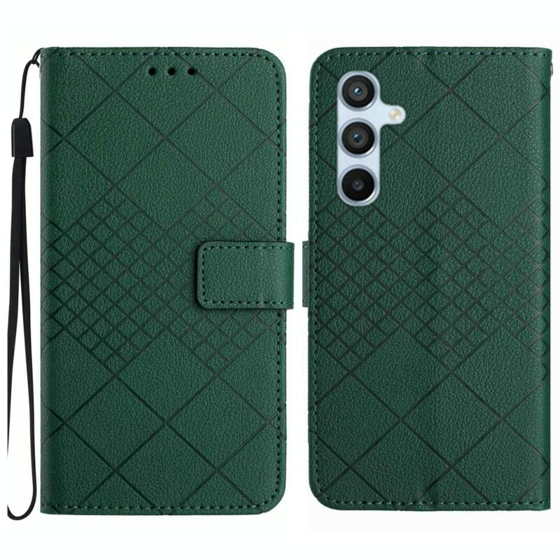 Για Samsung Galaxy A24 4G Rhombic Grid Texture Δερμάτινη θήκη τηλεφώνου (πράσινο)