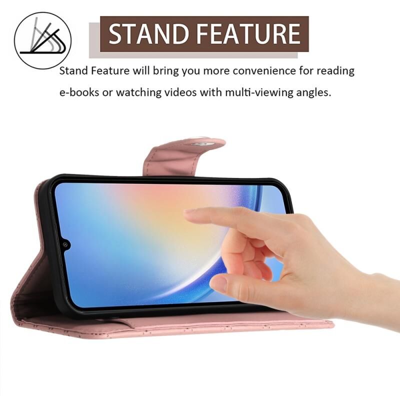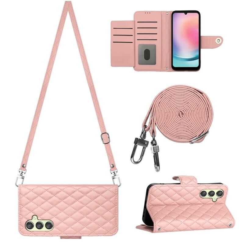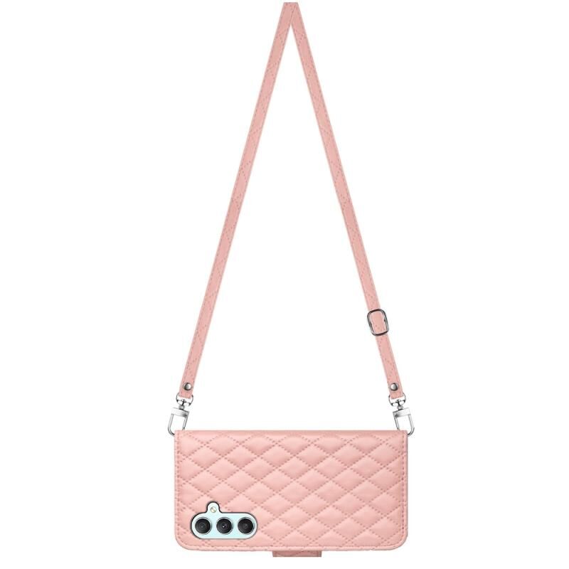 Για Samsung Galaxy A24 4G Rhombic υφή Flip δερμάτινη θήκη τηλεφώνου με μακρύ κορδόνι (Coral Pink)