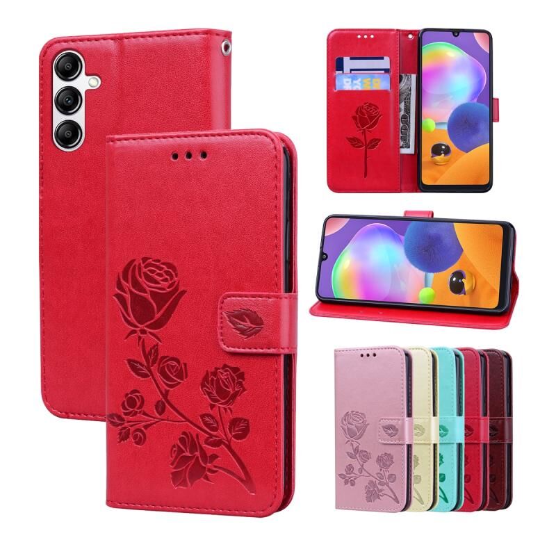 For Samsung Galaxy A24 4G Rose Embossed Flip PU Leather Phone Case(Red)