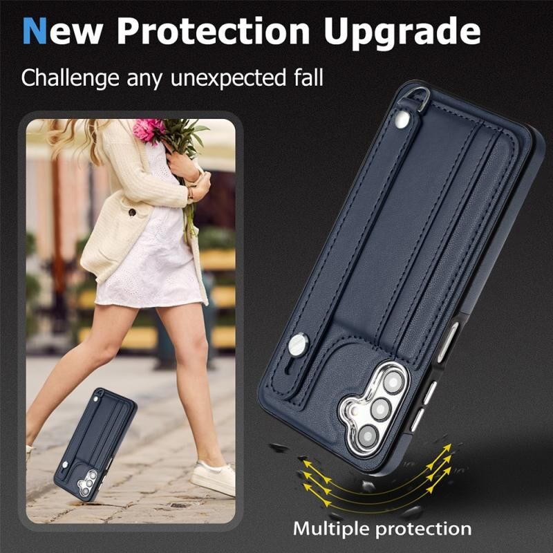 Για Samsung Galaxy A24 4G Αντικραδασμική δερμάτινη θήκη τηλεφώνου με λουράκι καρπού (μπλε)