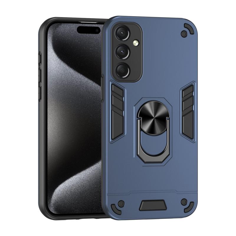 For Samsung Galaxy A24 4G Shockproof Metal Ring Holder Phone Case(Blue)