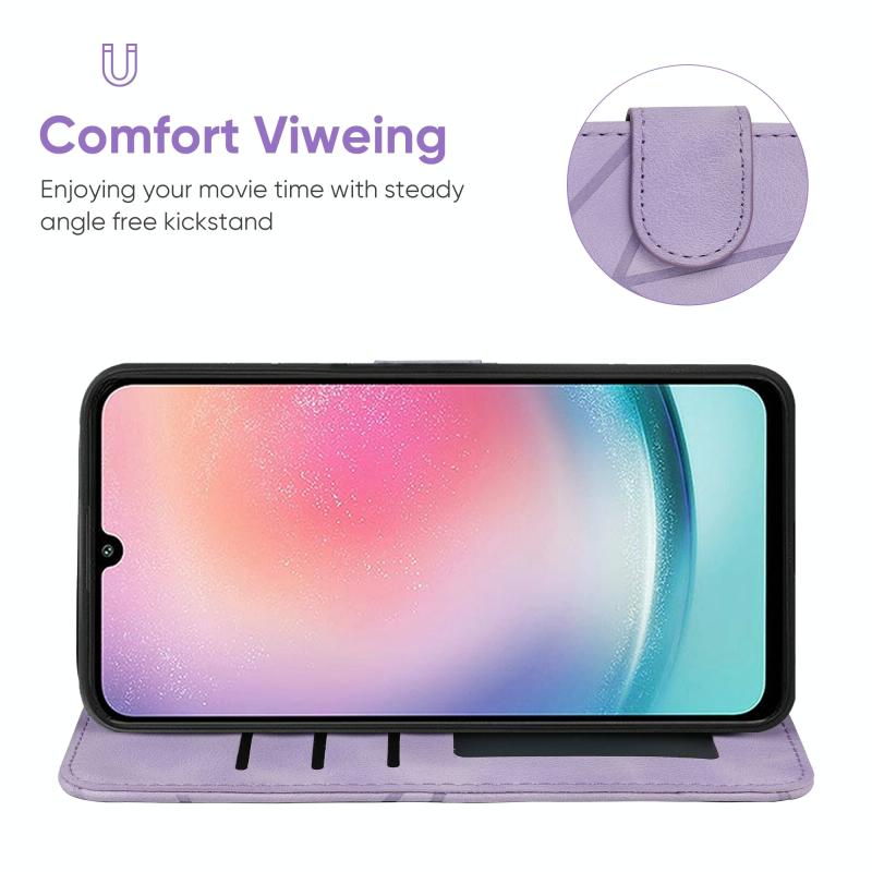 For Samsung Galaxy A24 4G Skin Feel Geometric Lines Leather Phone Case(Purple)