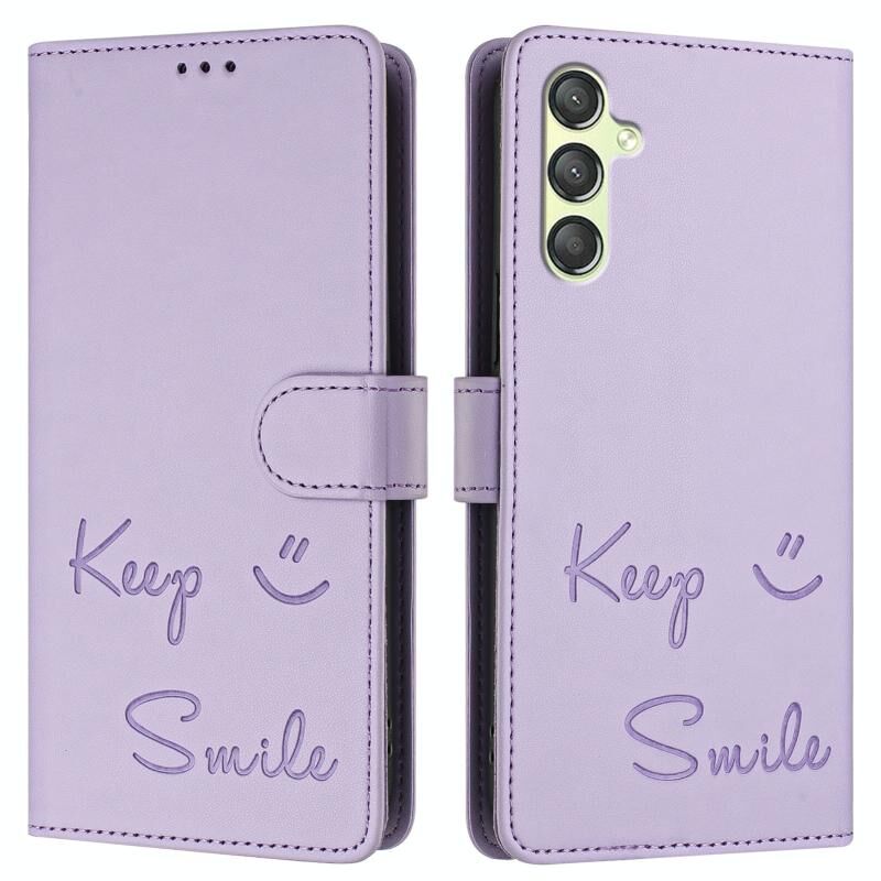 Για Samsung Galaxy A24 4G Χαμόγελο ανάγλυφο RFID δερμάτινη θήκη τηλεφώνου (Light Purple)