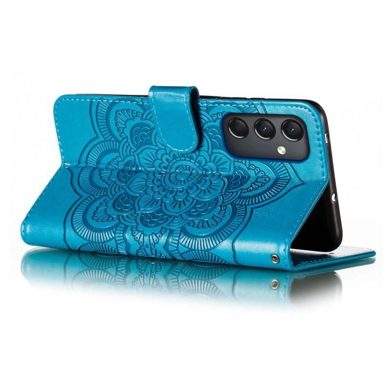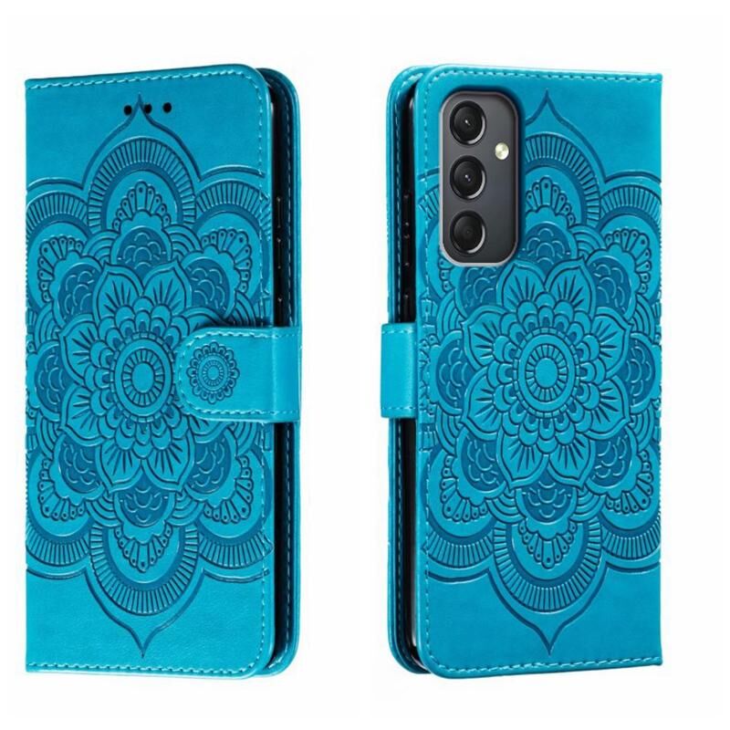 Για Samsung Galaxy A24 4G Sun Mandala ανάγλυφο μοτίβο τηλέφωνο δερμάτινη θήκη (μπλε)