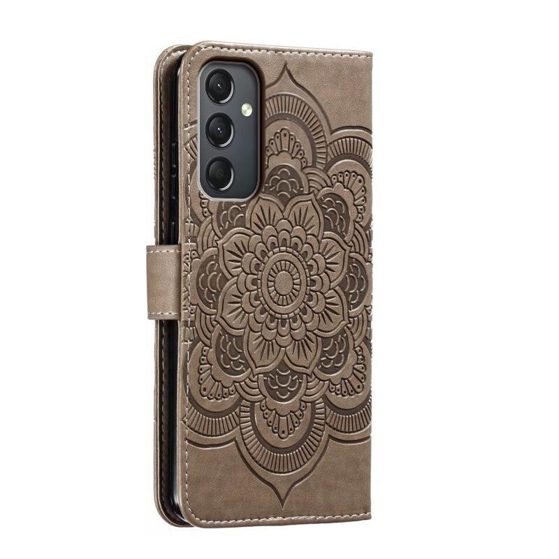 Για Samsung Galaxy A24 4G Sun Mandala ανάγλυφο μοτίβο τηλέφωνο δερμάτινη θήκη (γκρι)