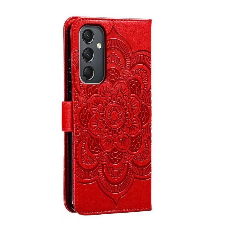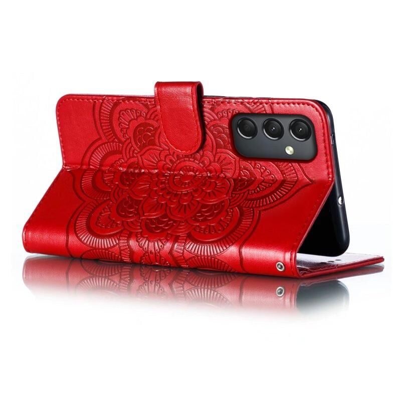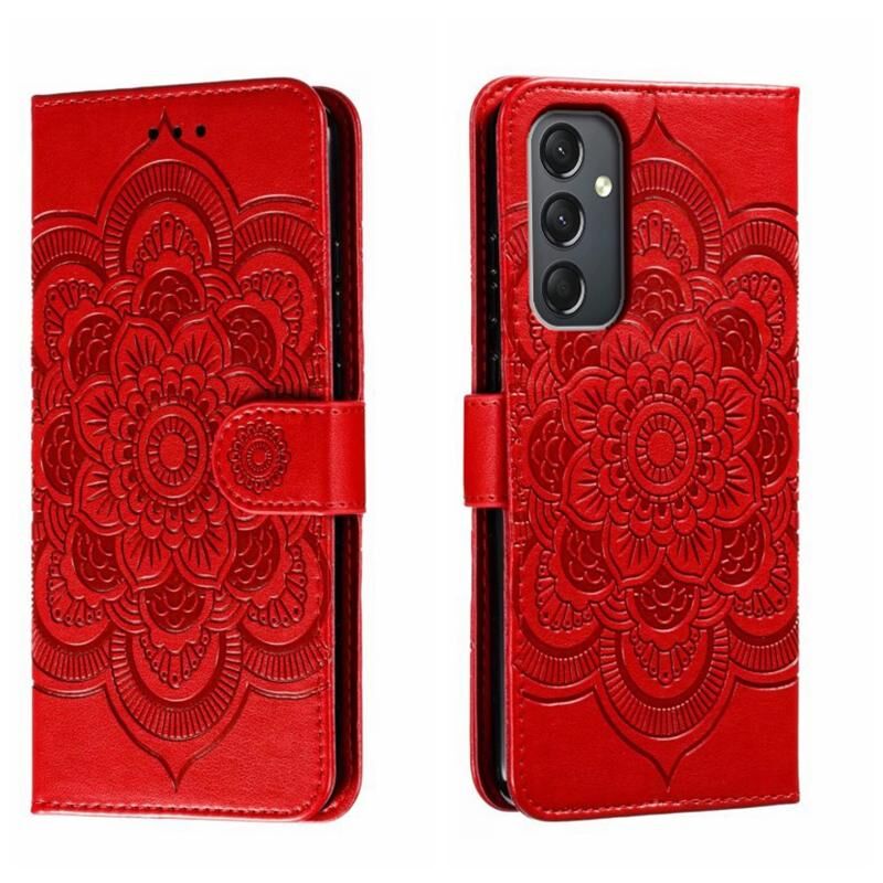 Για Samsung Galaxy A24 4G Sun Mandala ανάγλυφο μοτίβο τηλέφωνο δερμάτινη θήκη (κόκκινο)