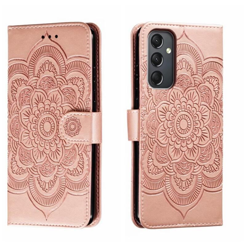 Για Samsung Galaxy A24 4G Sun Mandala ανάγλυφο μοτίβο τηλέφωνο δερμάτινη θήκη (Rose Gold)