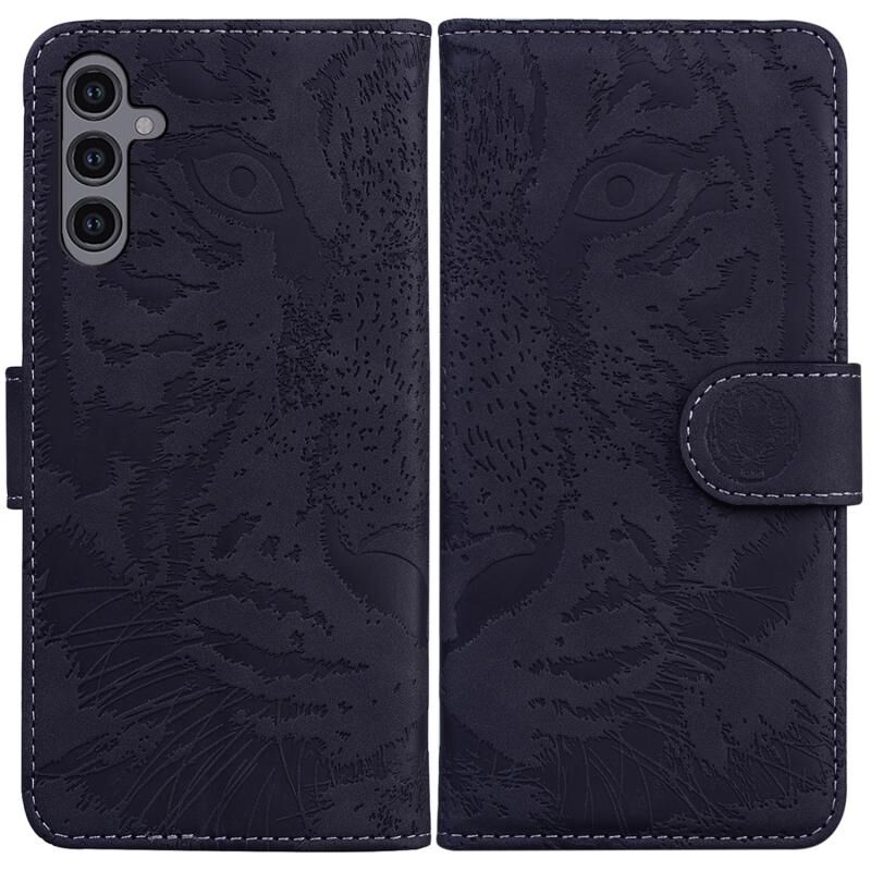 Θήκη τηλεφώνου Samsung Galaxy A24 4G με ανάγλυφο σχέδιο τίγρης, δερμάτινη, τύπου flip (Μαύρο)