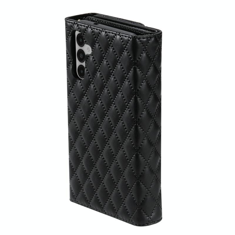 Για Samsung Galaxy A24 4G φερμουάρ πολλαπλών καρτών πορτοφόλι ρομβοειδές δέρμα υπόθεση τηλεφώνου (μαύρο)