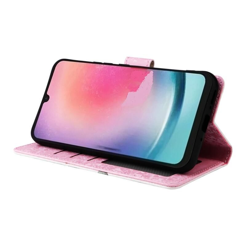 Θήκη κινητού Samsung Galaxy A24 5G από δέρμα με σχέδιο "Bronzing Painting" (Ροζ Λουλούδι) και προστασία RFID.