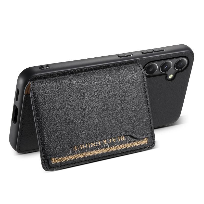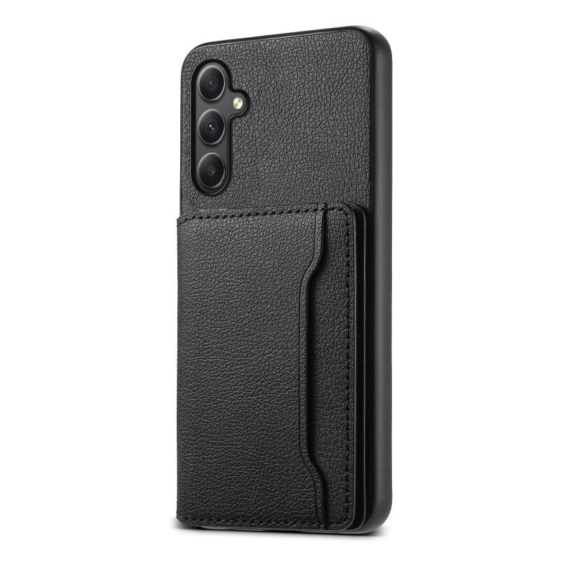 Θήκη κινητού τηλεφώνου Samsung Galaxy A24 5G με σχέδιο τσάντας κάρτας υφής μοσχαριού, πλήρης κάλυψη (Μαύρο)
