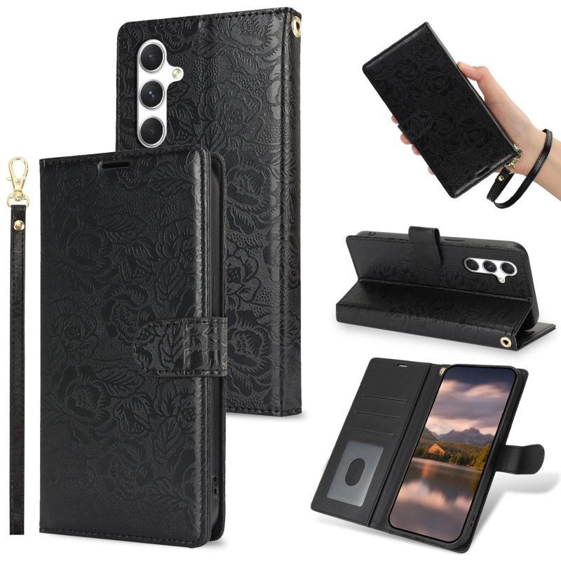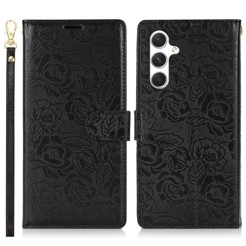 For Samsung Galaxy A24 5G Peony Flowers Imprint Leather Phone Case(Black)