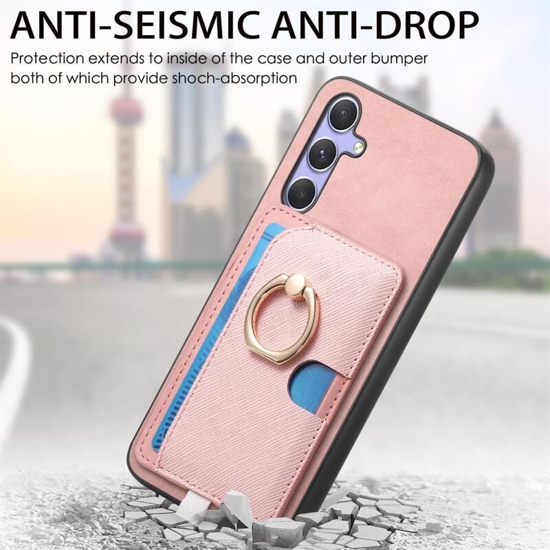Θήκη κινητού τηλεφώνου Samsung Galaxy A24 5G Retro Cross από δέρμα με ενσωματωμένη δακτύλιο και θήκη για κάρτες στο πλάι, συμβατή με MagSafe (Κίτρινο)